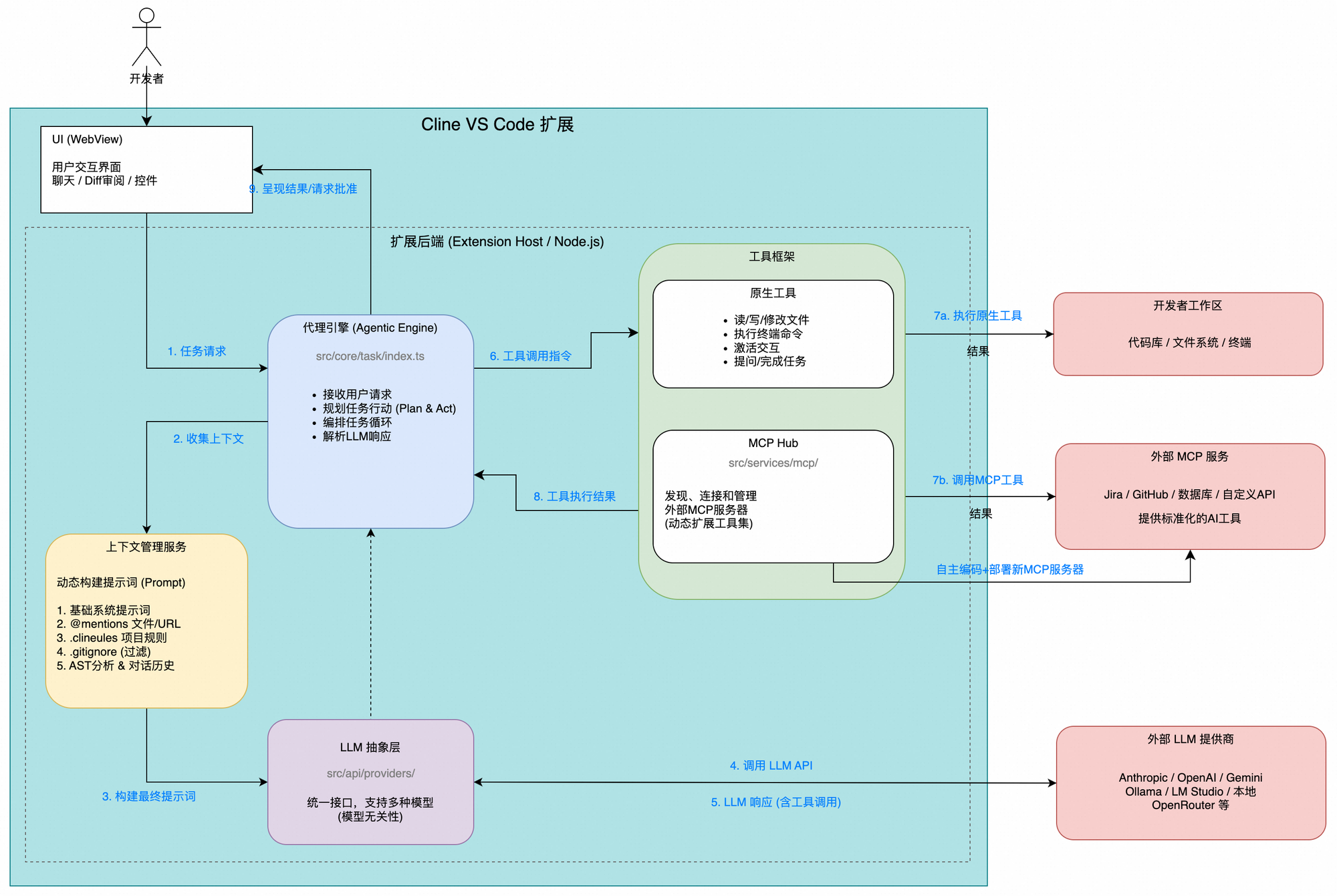 - 混合式上下文管理: 结合自动化分析和用户精确引导的上下文管理策略,是Cline能够有效处理大型复杂代码库的关键。它承认AI的局限性,并巧妙地将人类的领域知识融入到人机交互的循环中;