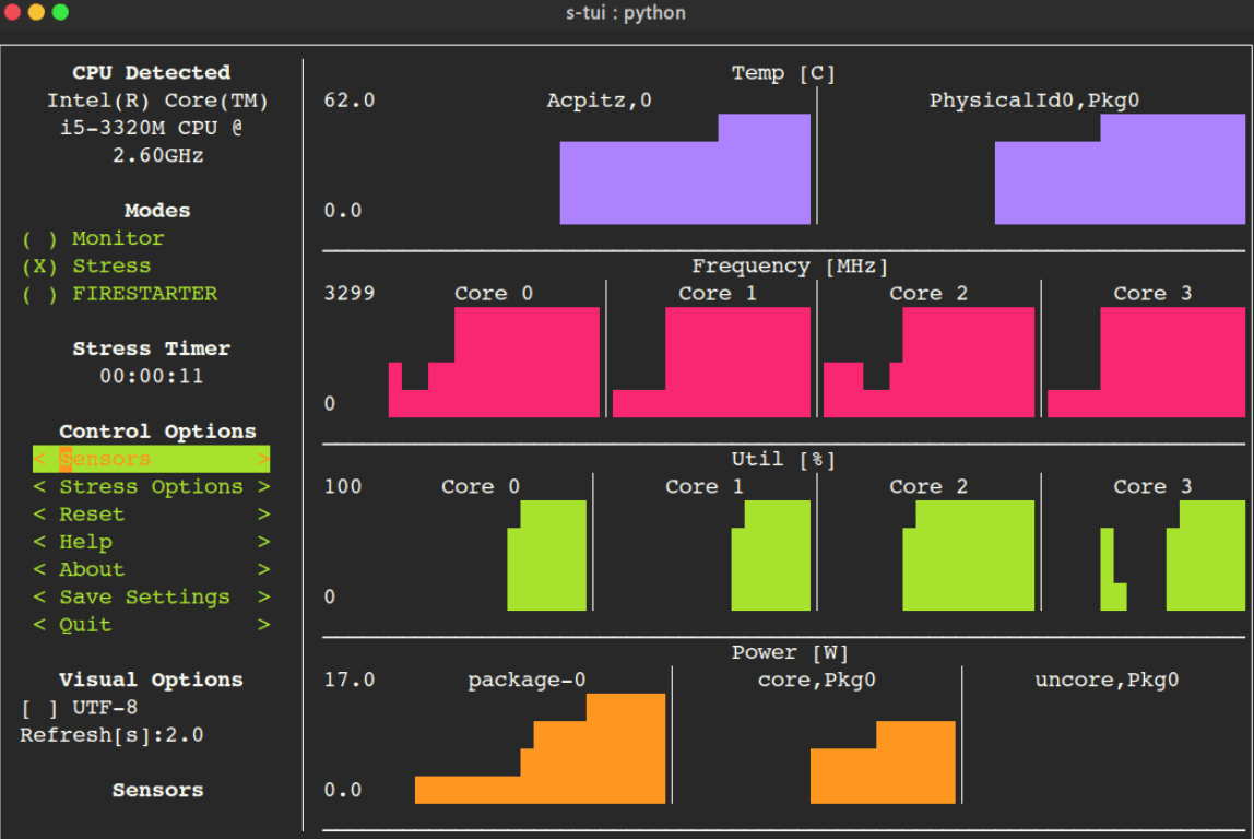 在终端中以图形方式监控 CPU 温度、频率、功率和利用率等数据变化。(star 4.2K)