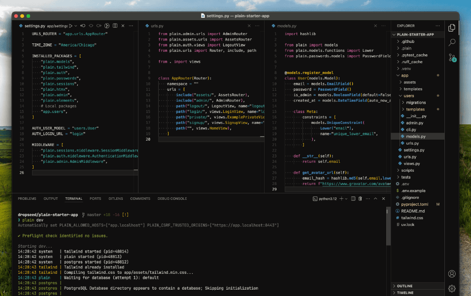 fork 自 Django 的 Web 框架,由一个核心包和一些可选的三方包组成。