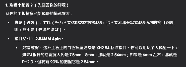 通常AI的答案都要经过仔细核对再选择相信,不过在这个我不熟悉的领域来说,这要是买回来不是它说的TTL协议那我也没什么办法(