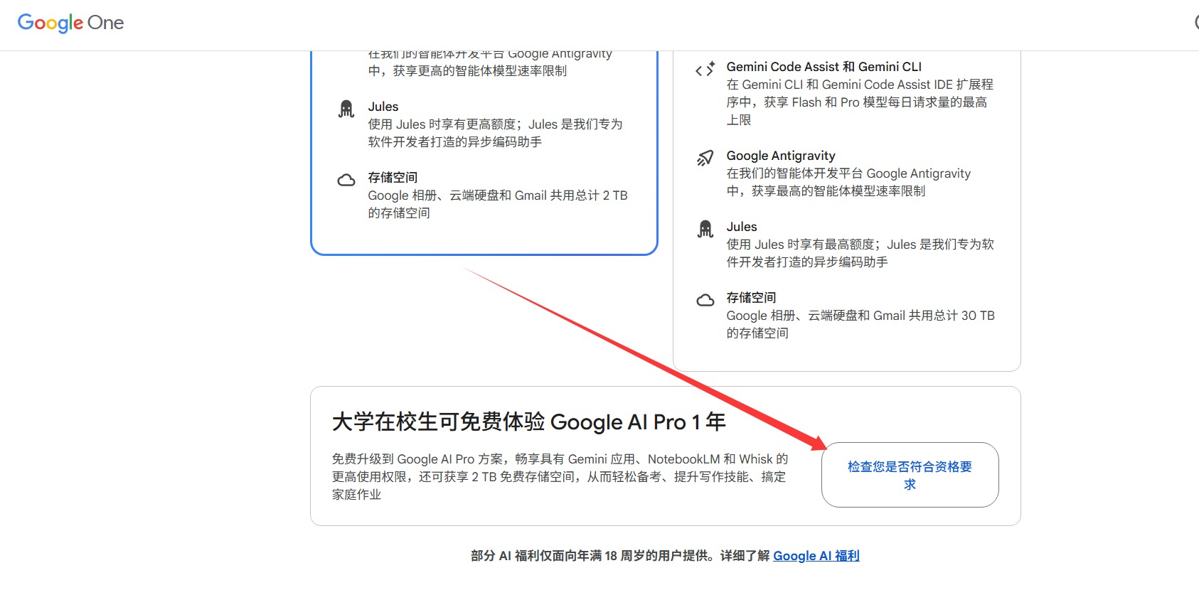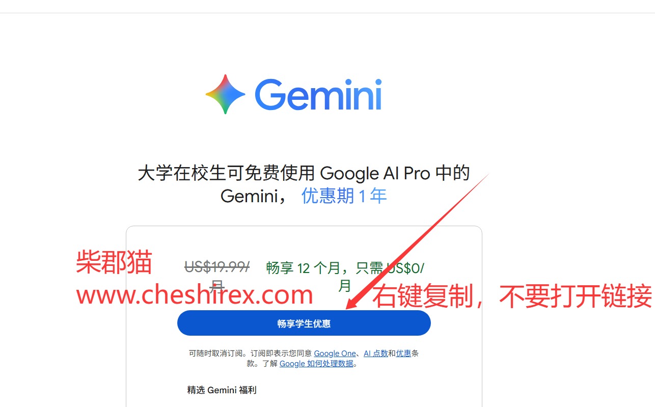 打开地址:https://one.google.com/ai-student