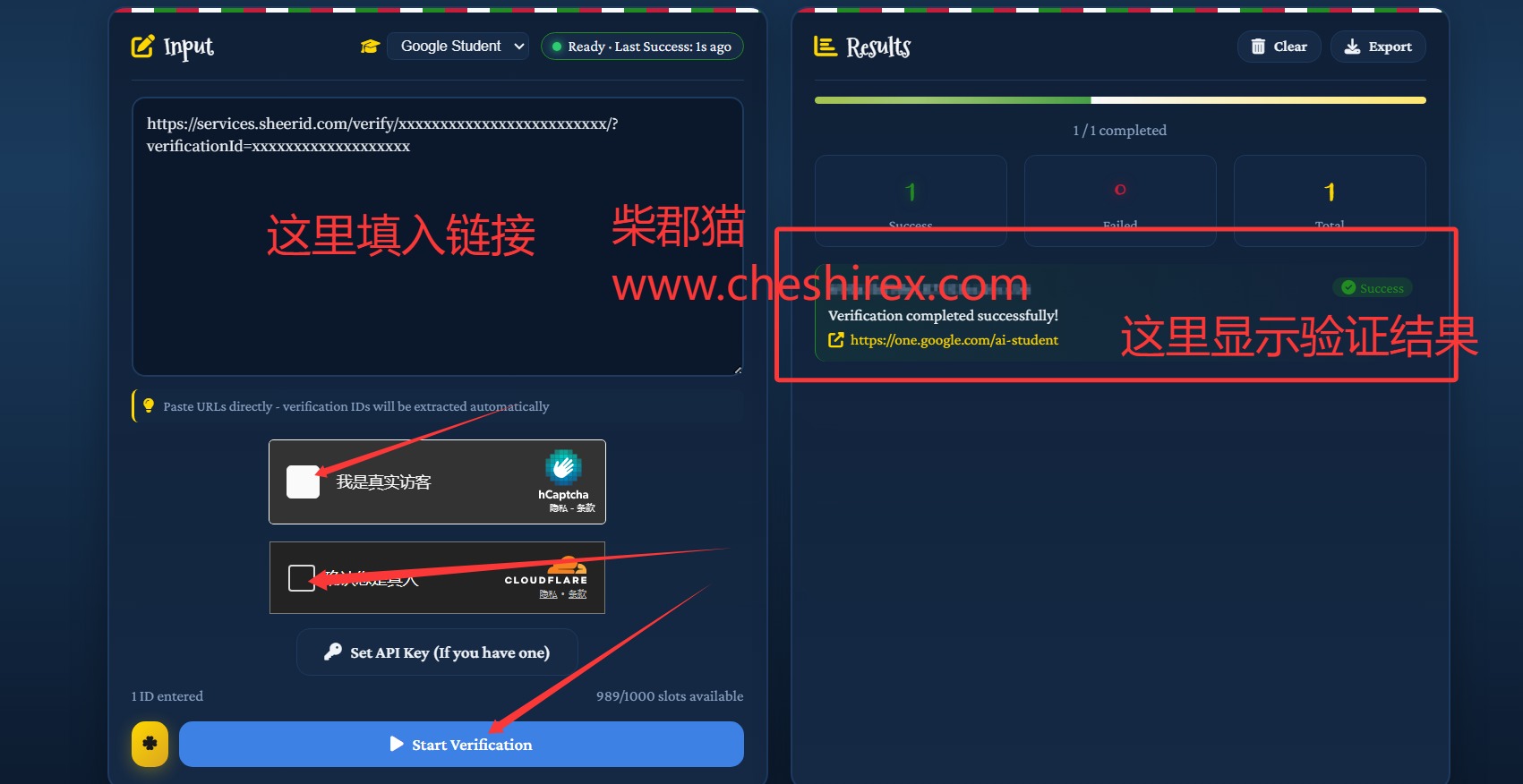 上图左侧填入链接,人机验证两次,右侧会显示验证结果。