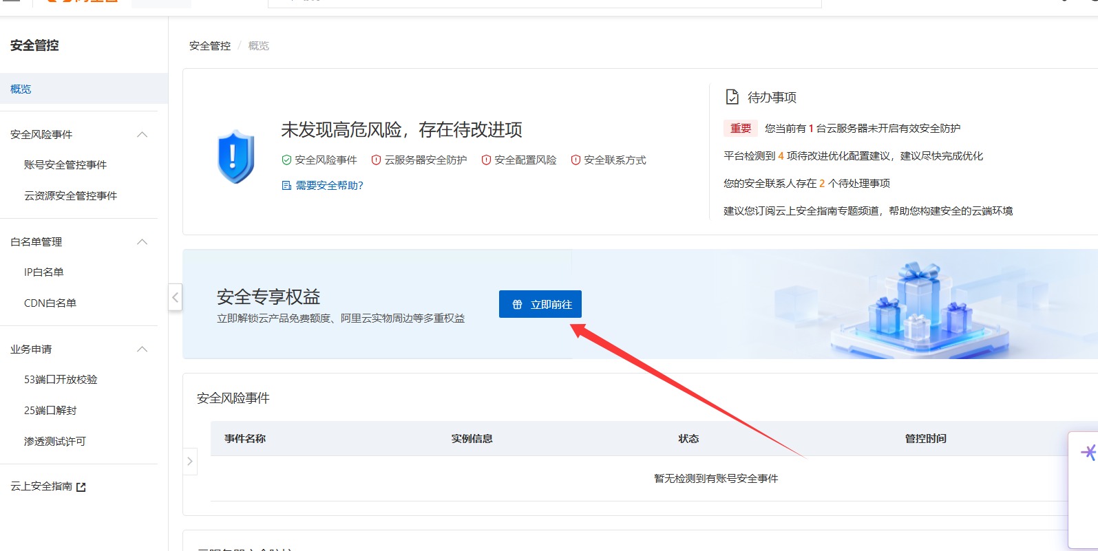 活动地址:https://yundun.console.aliyun.com/?p=scnew#/overviewNew