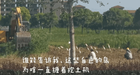 因为这些跟着挖掘机的鸟,大部分都是牛背鹭。