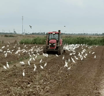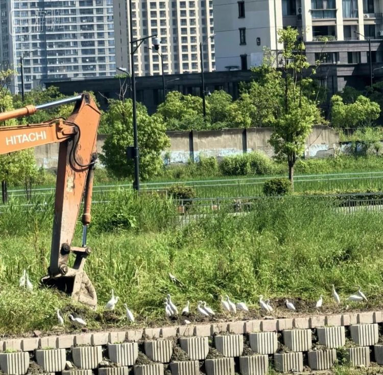 于是这类鸟儿很自然地完成了升级:从牛背鹭进化成了机背鹭,把古老的互利共生,平滑接入了现代化工地场景。
