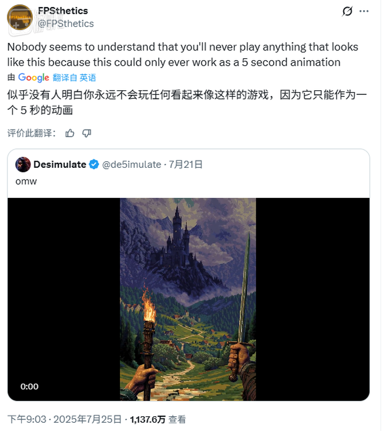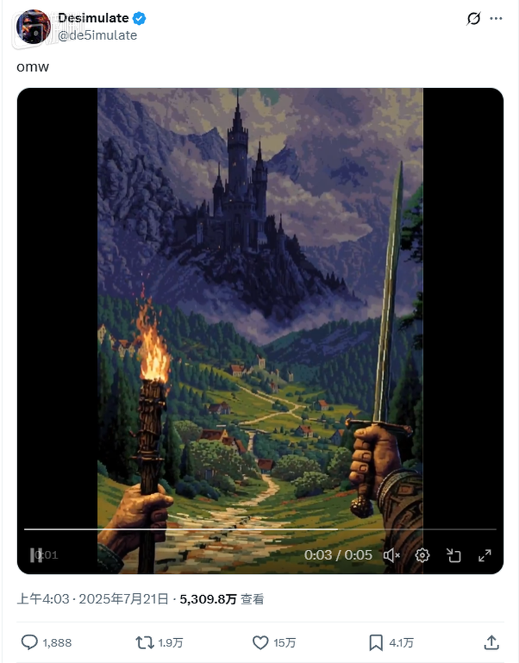 今年7月,X上一则5秒钟的视频在国外的游戏开发者和玩家圈中炸开了锅,如今这条视频已经累计了超5000万播放和上万次的转发: